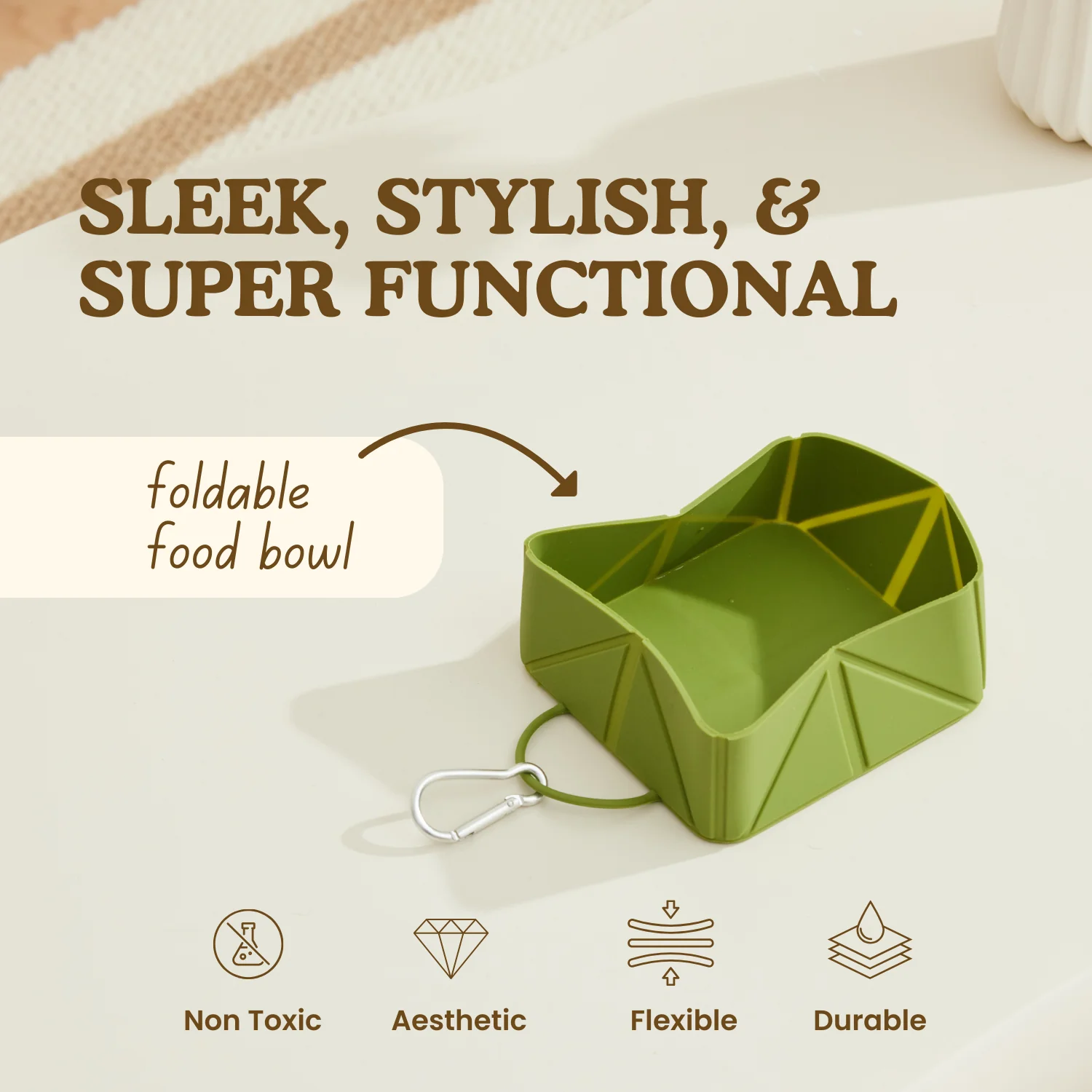 Foldable water and food bowl in 1 (brown)